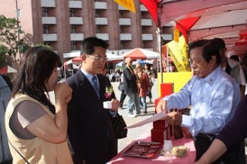 隨後並由廖理事長、文觀處陳處長及農業處農務科長羅文奇等人陪同,逐一前往各攤位慰勉大家的辛勞,大家除了感謝及肯定縣長給予的協助外,也紛紛請縣長喝自己種植及烹煮的咖啡,黃縣長說「今天可能是最多咖啡的一天」。